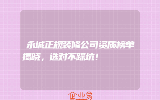 - 永城正规装修公司资质榜单揭晓,选对不踩坑!