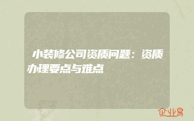 - 小装修公司资质问题解析:资质办理要点与难点一、资质办理的重要性对于小装修公司而言,资质办理是开展业务的重要前提。随着装修行业的规范化发展,客户对于装修公司的资质要求越来越高。拥有相应的资质证书,不仅能够提升公司的信誉度,还能帮助公司拓展业务