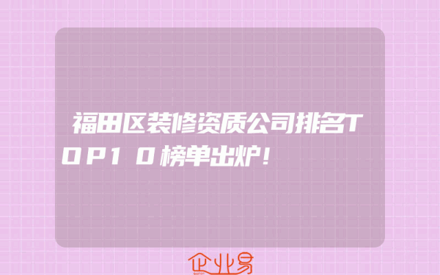 - 福田区装修资质公司排名TOP10榜单出炉!