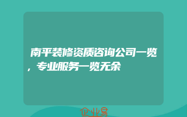 - 南平装修资质咨询公司一览,专业服务一览无余