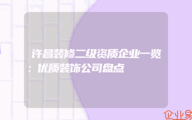 - 许昌装修二级资质企业一览:优质装饰公司盘点