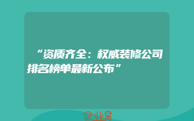 - “资质齐全:权威装修公司排名榜单最新公布”