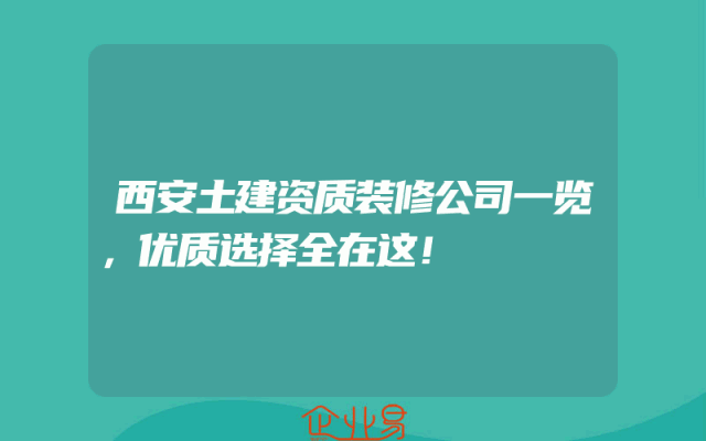 - 西安土建资质装修公司一览,优质选择全在这!