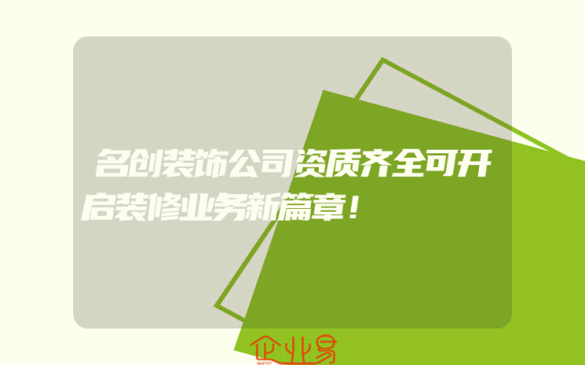 - 名创装饰公司资质齐全可开启装修业务新篇章!