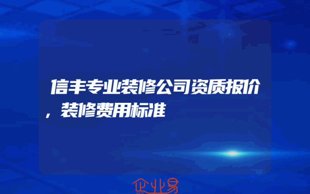- 信丰专业装修公司资质报价,装修费用标准