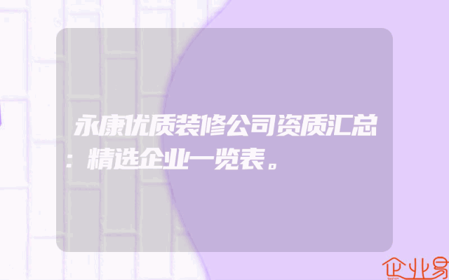 - 永康优质装修公司资质汇总:精选企业一览表。