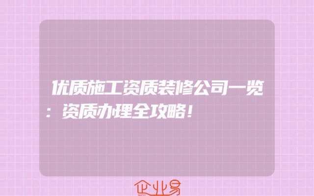 - 优质施工资质装修公司一览:资质办理全攻略!