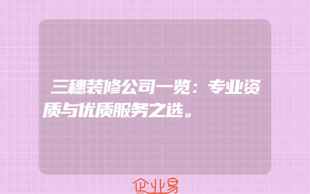 - 三穗装修公司一览:专业资质与优质服务之选。