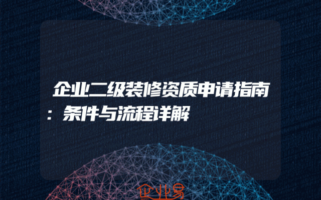 - 企业二级装修资质申请指南:条件与流程详解一、引言随着经济社会的发展,企业装修已成为推动建筑行业发展的重要力量。为了规范行业秩序,保障工程质量,企业申请二级装修资质已成为必然趋势。本文将详细解读企业二级装修资质申请的条件与流程,以便申请者了解