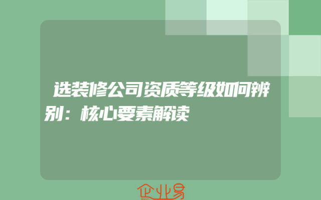 - 装修公司资质等级如何辨别:核心要素解读一、了解装修公司资质等级的重要性在选择装修公司时,了解其资质等级是至关重要的一环。装修公司资质等级是国家对从事建筑装饰装修工程企业的综合评价,不仅反映了公司的实力,还体现了其专业水平和服务能力。正确的辨