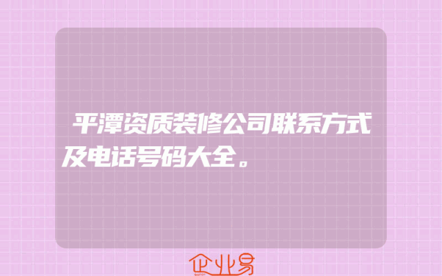 - 平潭资质装修公司联系方式及电话号码大全一、平潭资质装修公司概述平潭作为福建省的一个重要区域,拥有众多的装修公司。对于需要装修服务的企业或个人而言,了解这些公司的联系方式和电话号码至关重要。本文将为您提供一份详尽的平潭资质装修公司联系方式及电