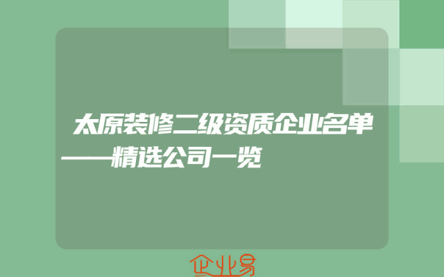 - 太原装修二级资质企业名单——精选公司一览一、引言随着城市化进程的加快,太原的装修行业迅速发展,众多装修企业如雨后春笋般涌现。其中,拥有二级资质的企业以其专业的服务、过硬的实力,在行业中脱颖而出。本文将为您详细介绍太原地区装修二级资质企业的名