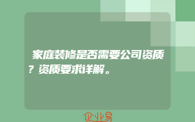 - 家庭装修是否需要公司资质?资质要求详解家庭装修市场概况随着生活品质的提升,家庭装修已成为广大业主关注的焦点。市场上存在大量的装修公司和个人装修师傅,为业主提供多样化的装修风格和服务。然而,随之而来的问题便是,进行家庭装修的公司是否需