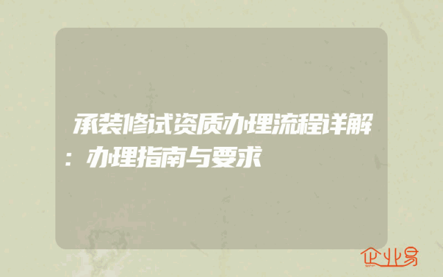 - 承装修试资质办理流程详解:办理指南与要求一、了解承装修试资质首先,我们需要明确承装修试资质的概念。承装修试资质是指企业在电力设施建设、维护和试验过程中需要具备的特定资质,这是保障电力设施安全的重要手段。因此,对于从事相关工作的企业来说,了解