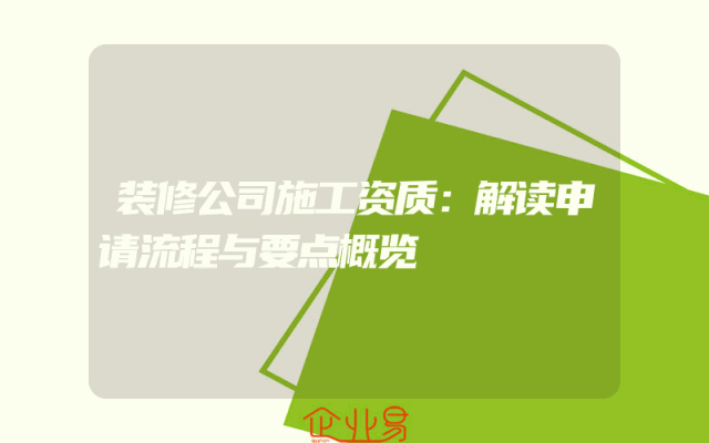- 注册带装修资质的公司全攻略:资质办理详解一、了解装修行业资质要求在注册带装修资质的公司之前,首先要深入了解装修行业的资质要求。不同地域和不同类型的装修公司,其资质标准可能会有所差异。一般而言,装修资质包括设计资质和施工资质,具体等级划分依据