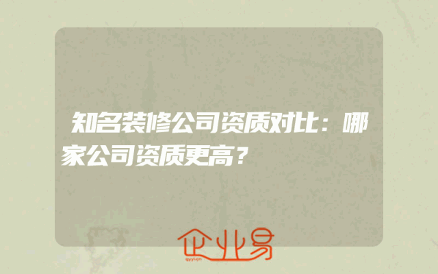- 知名装修公司资质对比:哪家公司资质更高?一、引言随着装修行业的快速发展,市场上涌现出众多知名的装修公司。对于消费者而言,选择一家资质更高的装修公司可以确保工程质量和售后服务得到保障。本文将对比分析几家知名装修公司的资质,以便消费者能够做出更