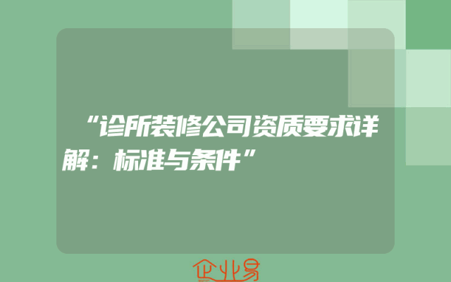- 诊所装修公司资质要求详解:标准与条件一、引言随着医疗行业的迅速发展,诊所装修公司的业务也逐渐增多。为了保障医疗服务质量及患者安全,诊所装修公司的资质要求越来越严格。本文将从多个角度详细介绍诊所装修公司资质的要求和标准。二、诊所装修公司资质标