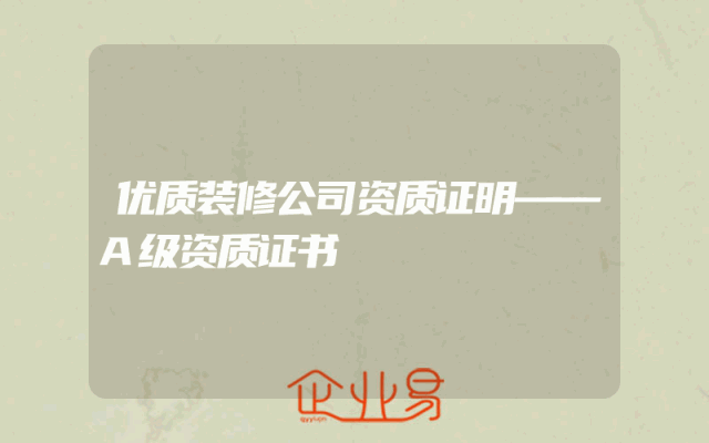 - 优质装修公司资质证明——A级资质证书解析一、什么是A级资质证书在装修行业,A级资质证书是企业综合实力的重要体现。它是国家权威机构对装修公司资质的最高评级,代表着企业在资金、技术、管理、人员等多方面的优势。二、A级资质证书的获取条件获得A级资
