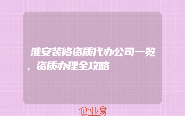 - 淮安装修资质代办公司一览,资质办理全攻略