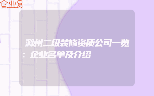 - 滁州二级装修资质公司一览:企业名单及介绍