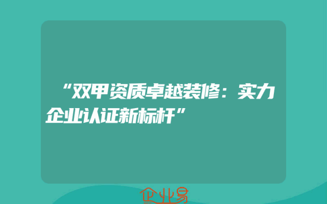 - “双甲资质卓越装修:实力企业认证新标杆”