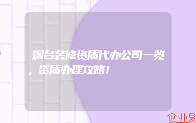 - 烟台装修资质代办公司一览,资质办理攻略!