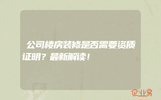 - 公司楼房装修是否需要资质证明?最新解读!