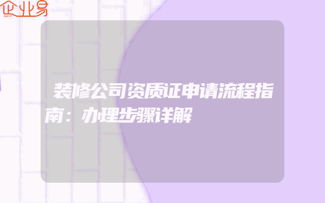 - 装修公司资质证申请流程指南:办理步骤详解