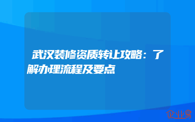 - 武汉装修资质转让攻略:了解办理流程及要点