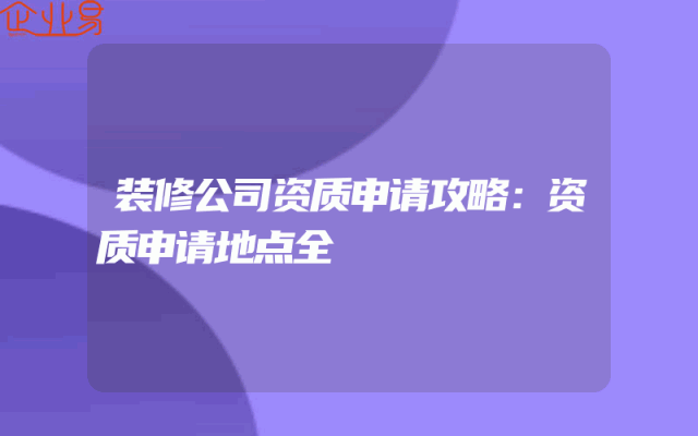 - 装修公司资质申请攻略:资质申请地点全