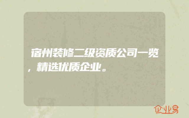 - 宿州装修二级资质公司一览,精选优质企业。