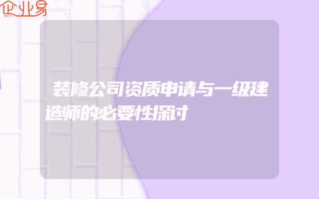 - 装修公司资质申请与一级建造师的必要性探讨