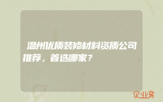 - 温州优质装修材料资质公司推荐,首选哪家?