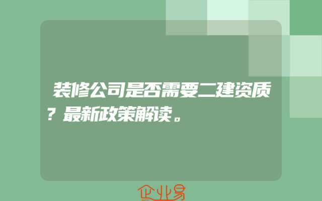 - 装修公司是否需要二建资质?最新政策解读。