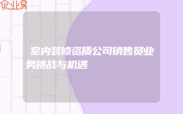 - 室内装修资质公司销售员业务挑战与机遇
