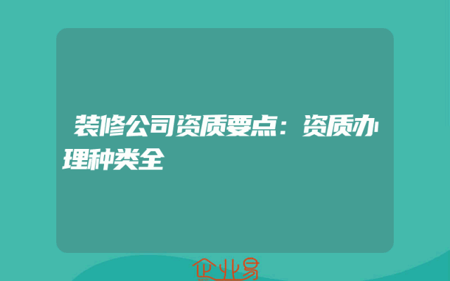 - 装修公司资质要点:资质办理种类全
