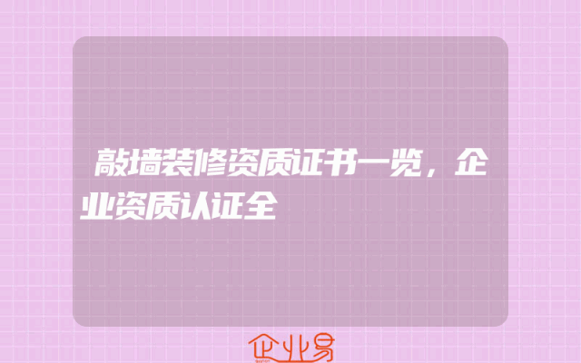 - 敲墙装修资质证书一览,企业资质认证全