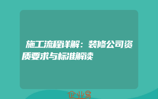 - 施工流程详解:装修公司资质要求与标准解读