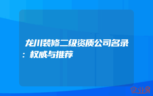 - 龙川装修二级资质公司名录:权威与推荐