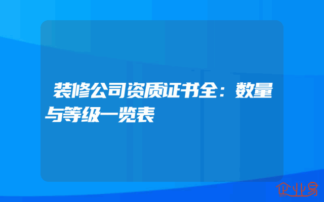 - 装修公司资质证书全:数量与等级一览表