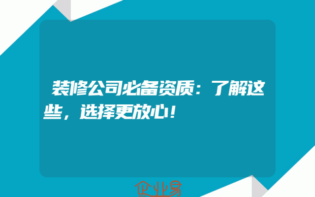 - 装修公司必备资质:了解这些,选择更放心!