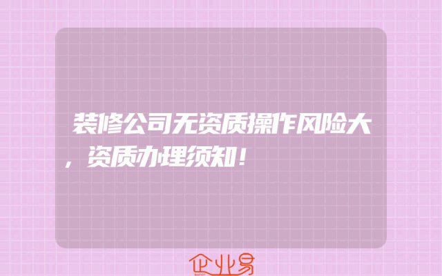 - 装修公司无资质操作风险大,资质办理须知!