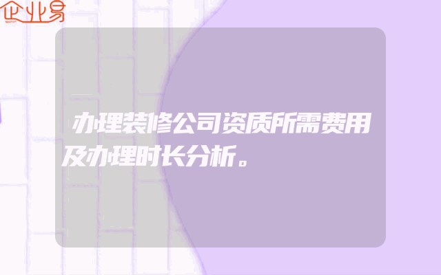 - 办理装修公司资质所需费用及办理时长分析。
