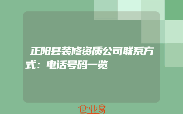 - 正阳县装修资质公司联系方式:电话号码一览