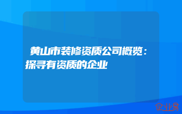 - 黄山市装修资质公司概览:探寻有资质的企业