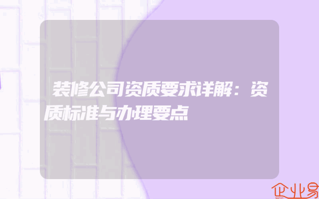 - 装修公司资质要求详解:资质标准与办理要点