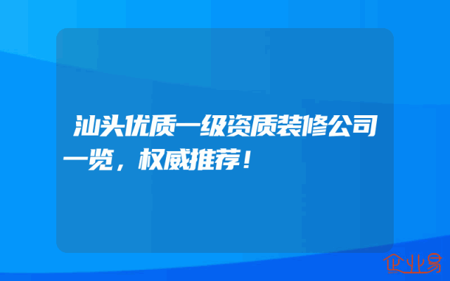 - 汕头优质一级资质装修公司一览,权威推荐!