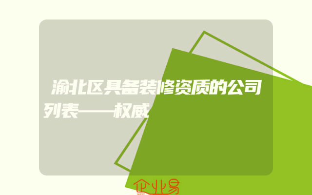 - 渝北区具备装修资质的公司列表——权威