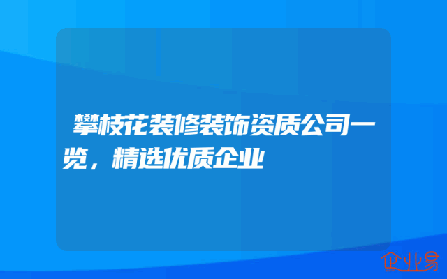 - 攀枝花装修装饰资质公司一览,精选优质企业