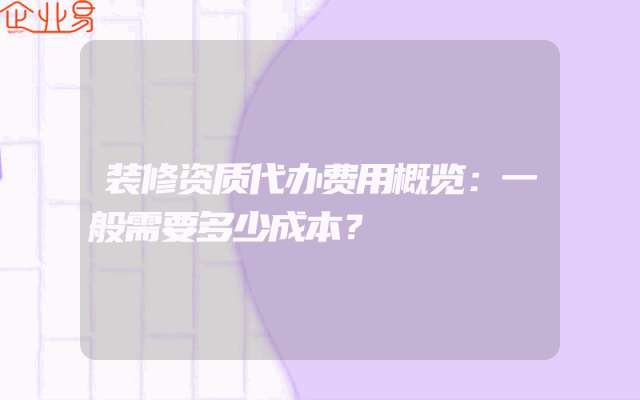 - 装修资质代办费用概览:一般需要多少成本?